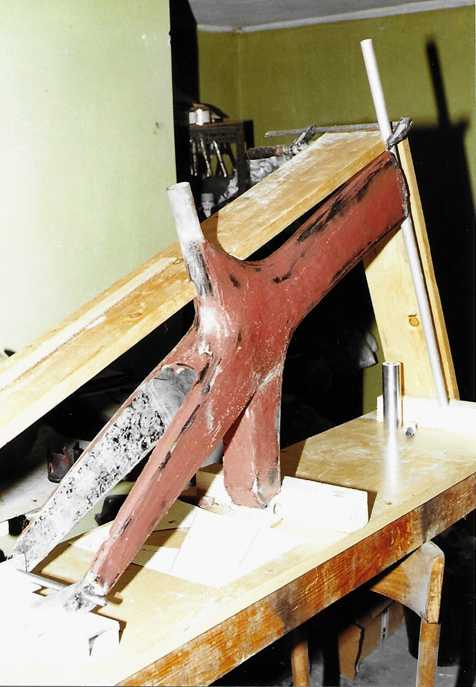 Poniżej fotki całego roweru, który jeździł na targi oraz ramy, która nigdy nie została skończona i przeleżała ładnych parę lat u Pana Jarosława. Stosunkowo niedawno, została pomalowana tak jak sobie ją wyobrażał w tamtych latach, mianowicie „różowa w słonie”.