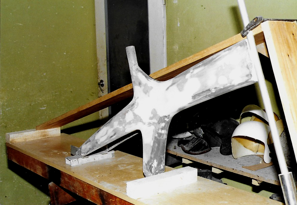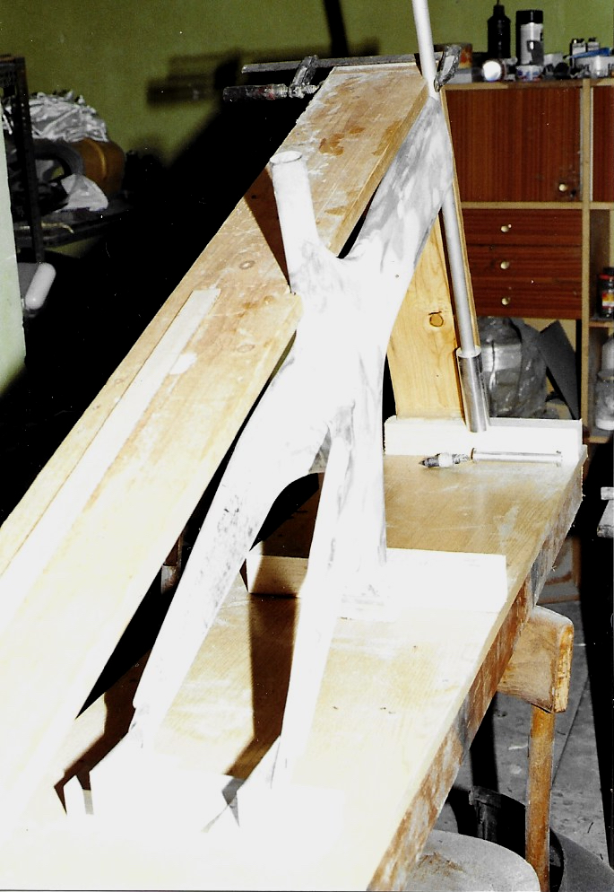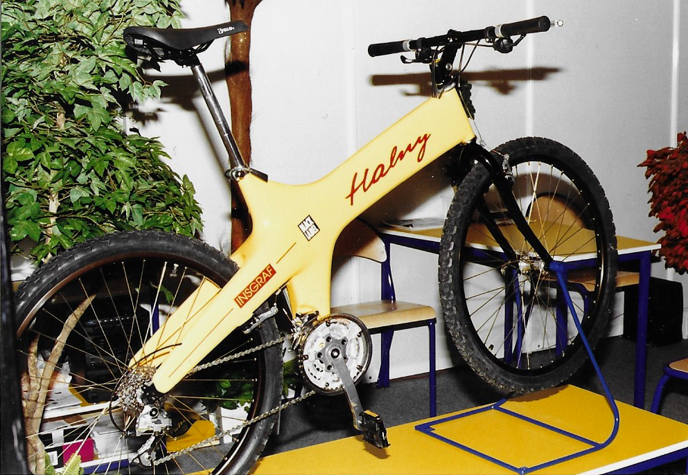 Zaczynając od początku tego co udawało mi się dowiedzieć. Cofamy się do 1995 roku. Miejscowość Bielsko-Biała i Bogumił Bereś, który 1995 roku założył Biuro Projektowe „B” Bogumił Bereś. I w tym właśnie biurze projektowym zajmującym się konstrukcjami wykorzystującymi kompozyty szklane, węglowe i kevlarowe zaprojektował ramę, która zadebiutowała na targach w Katowicach w 1997 roku. Poniżej fotka Bogumiła wraz z Hurricane – następcą modelu Halny z 1996 roku. Rama została zaprojektowana na zlecenie Wojciecha Kaliskiego o którym opowiem nieco niżej. Warto tutaj wspomnieć, że Pan Bereś to wybitny konstruktor lotniczy. Specjalizował się w projektowaniu kompozytowych szybowców, gdzie technologicznie są to bardzo zaawansowane konstrukcje. Zaprojektował między innymi szybowiec Diana.