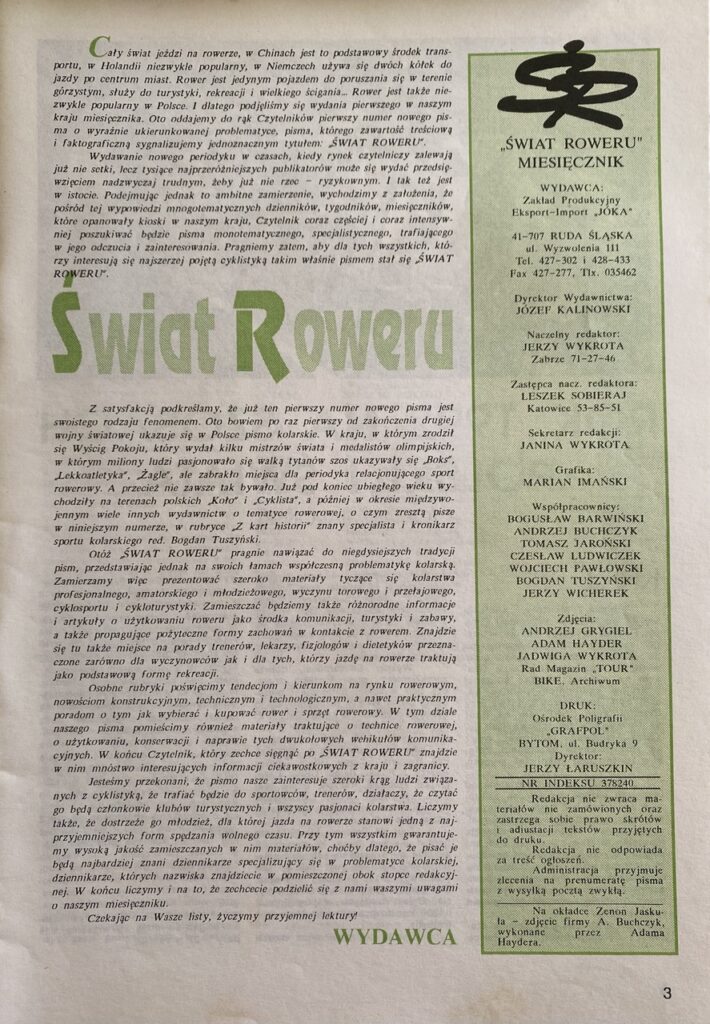 Świat Roweru – Numer pierwszy – Kwiecień 1992